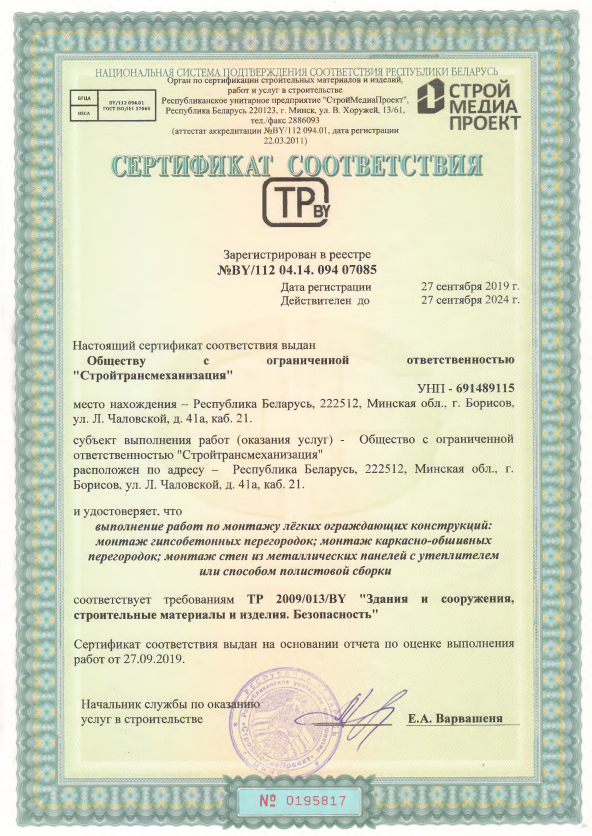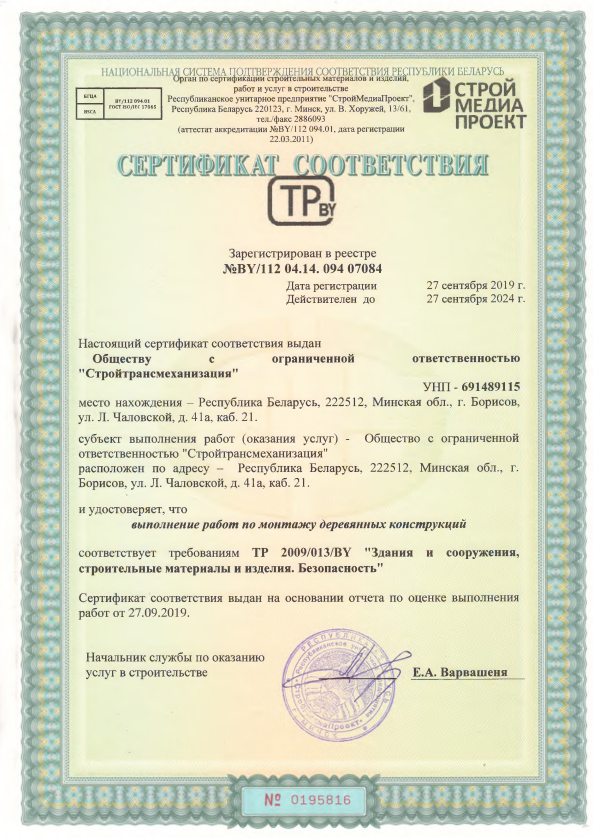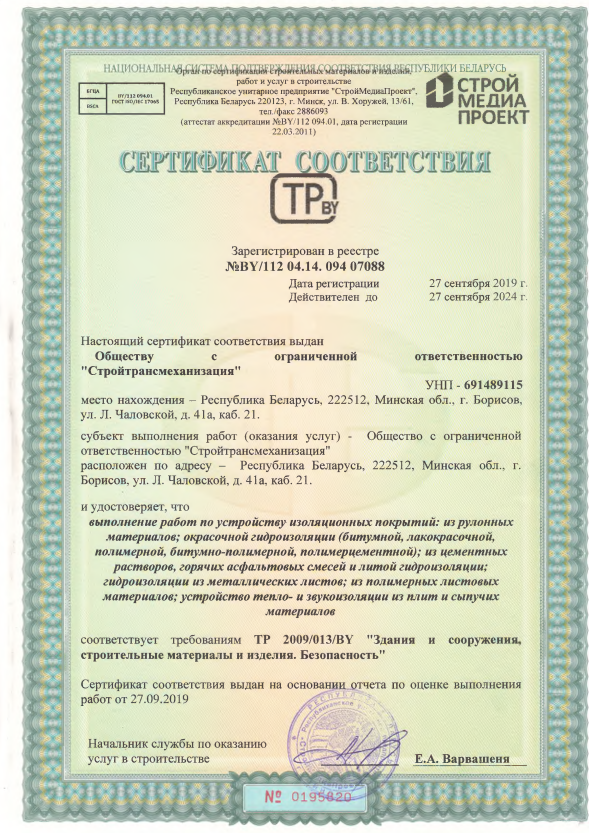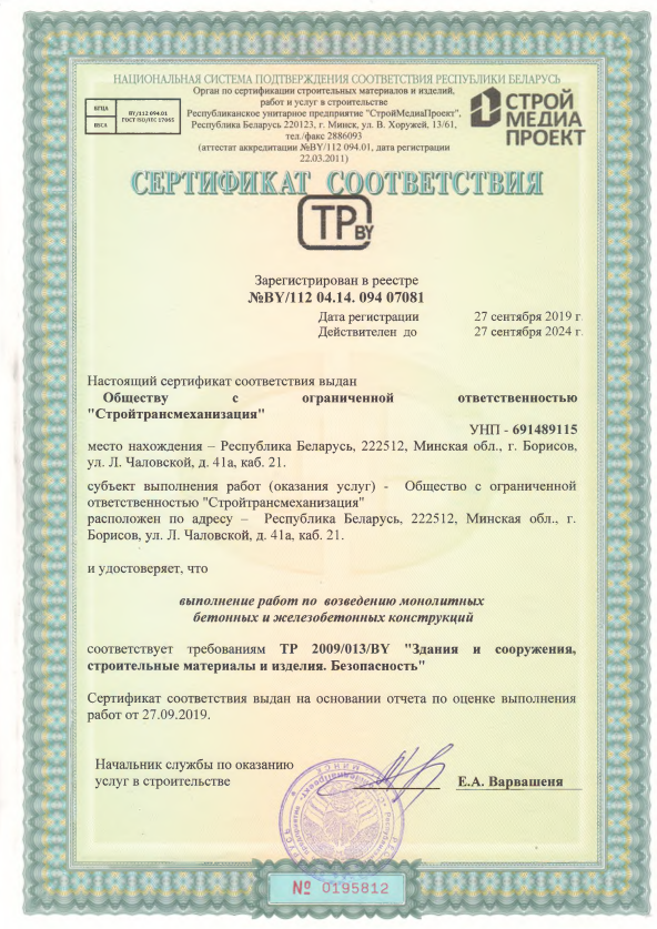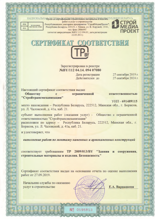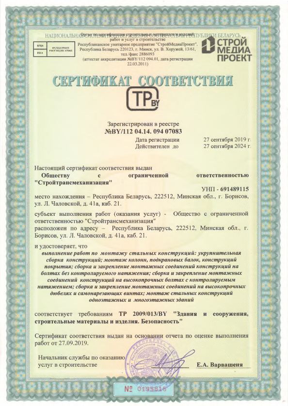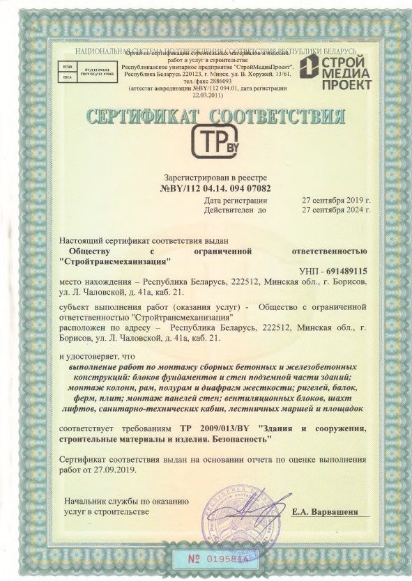 Сертификаты соответствия выполнения строительно-монтажных работ