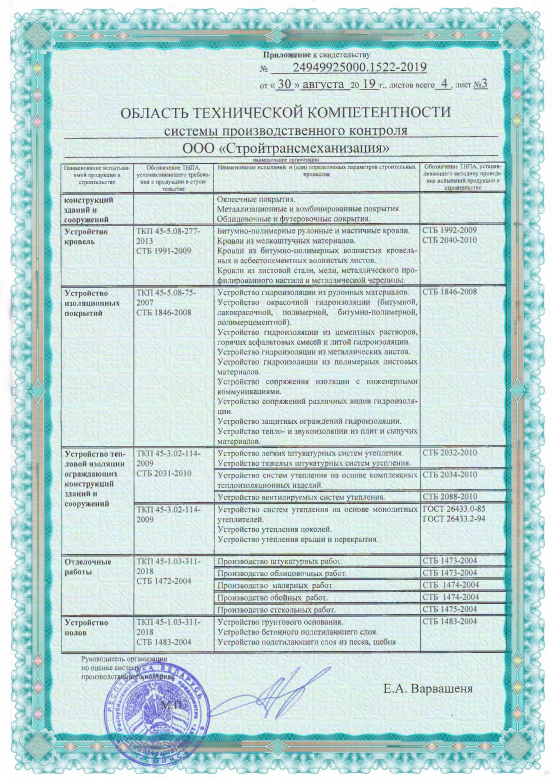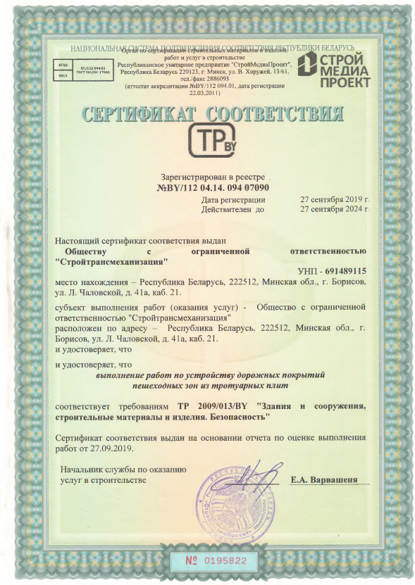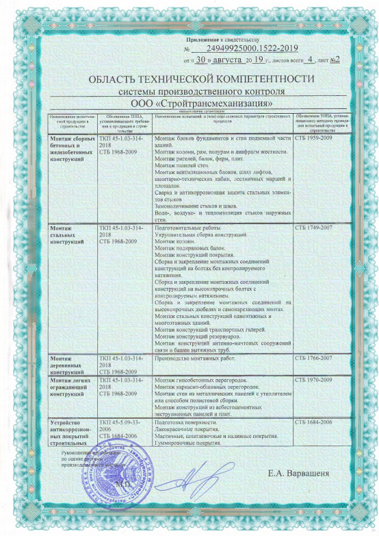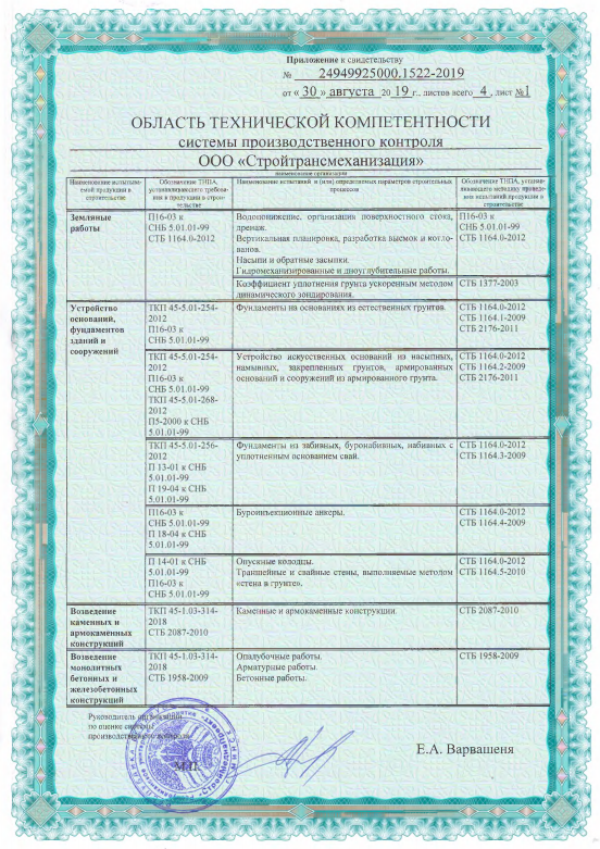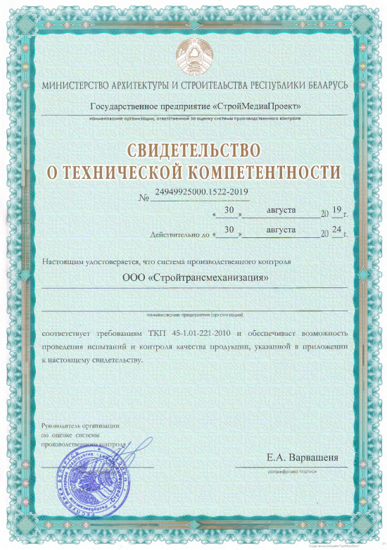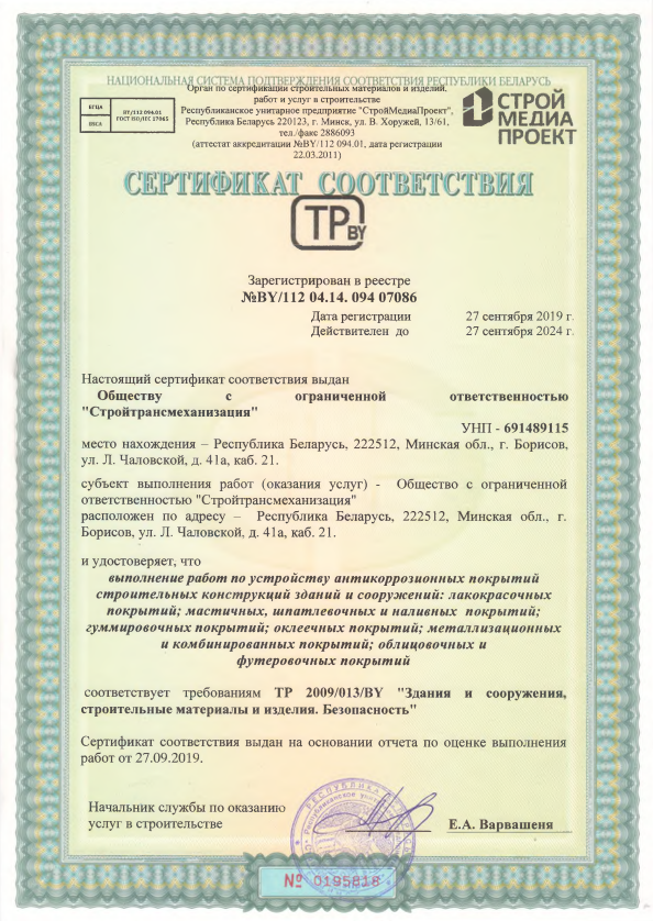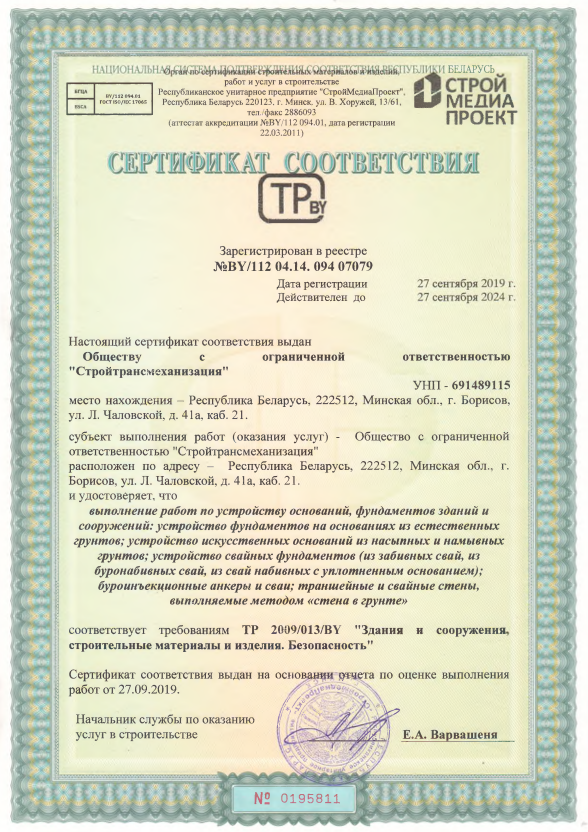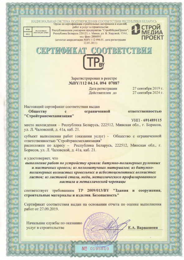 Сертификаты соответствия выполнения строительно-монтажных работ